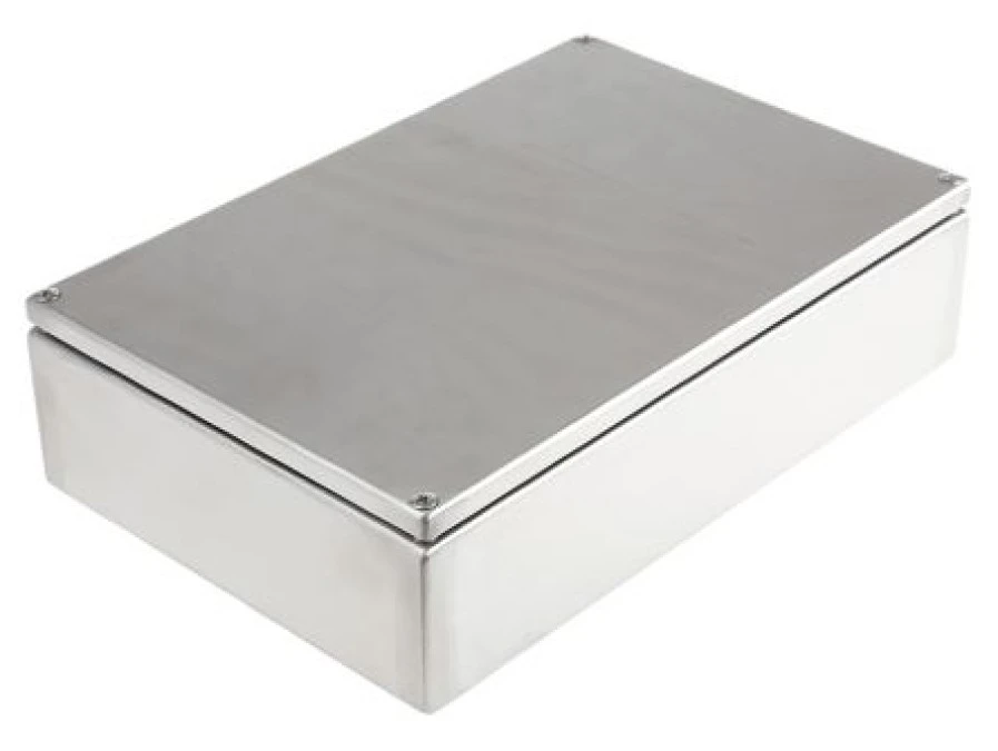 12. Puszka elektroinstalacyjna, 300 x 80 x 200mm, IP66, kolor Niemalowany, materiał Stal nierdzewna, RS PRO 2016.39