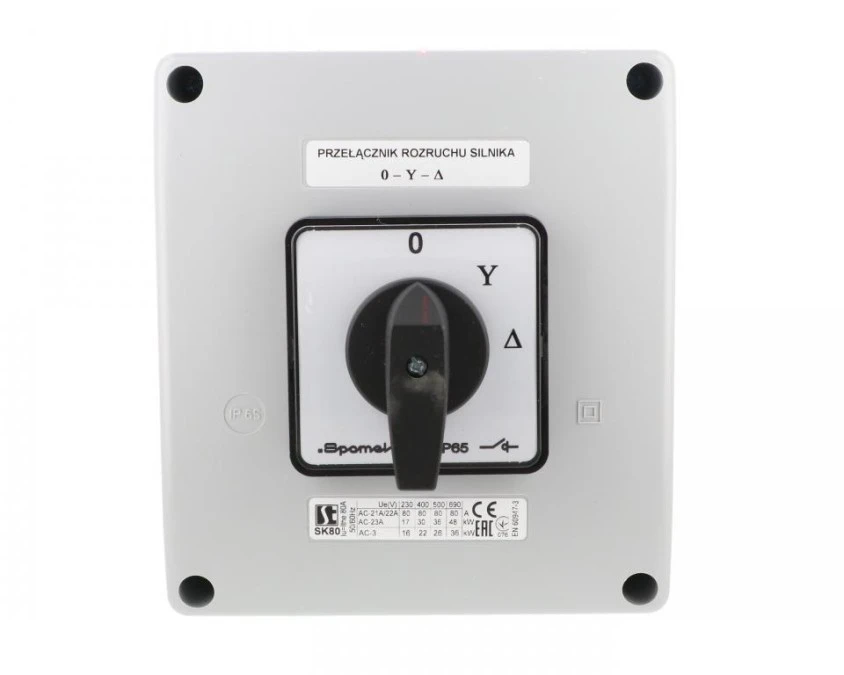 Łącznik krzywkowy 80A przełącznik rozruchowy trójfazowy 0 Y A w obudowie OB18 SK80-4.831\OB18