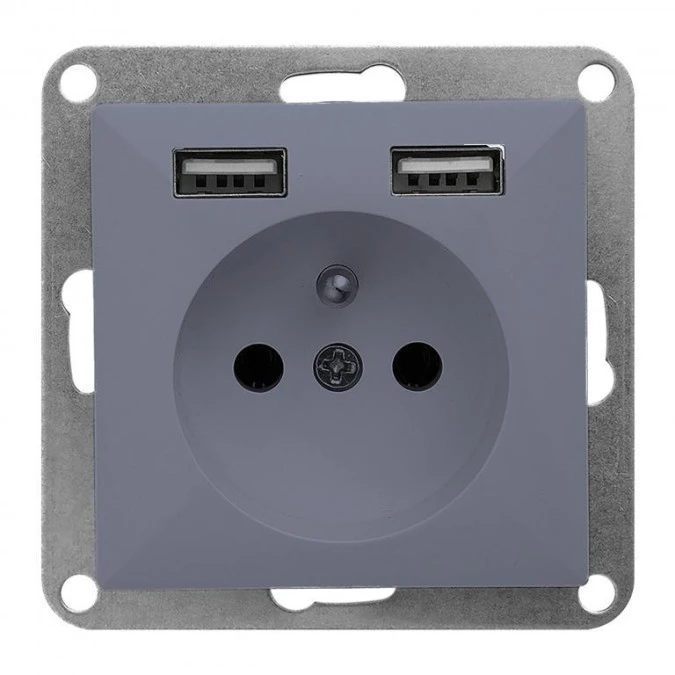 10. Gniazdo pojedyncze p/t 2P+Z z ładowarką Pearl, 16A, 250V, PT-16P/USB, antracyt,OR-OE-7705/USB/A 270.02