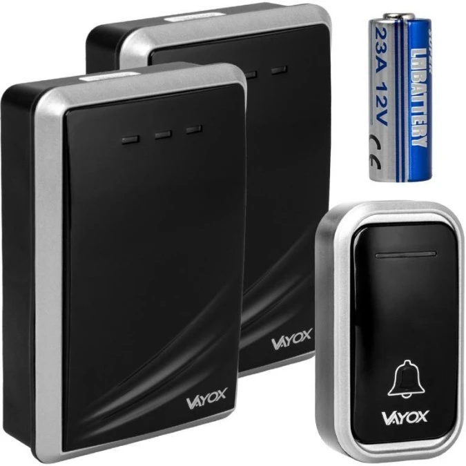 Dzwonek bezprzewodowy 110-240V / przycisk na baterie 23A12V czarny VA0405 Vayox