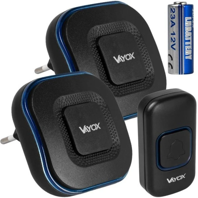 10. Dzwonek bezprzewodowy 110-240V / przycisk na baterie 23A12V czarny VA0405 Vayox 67.38
