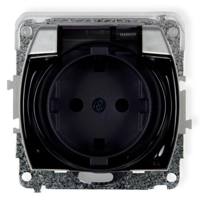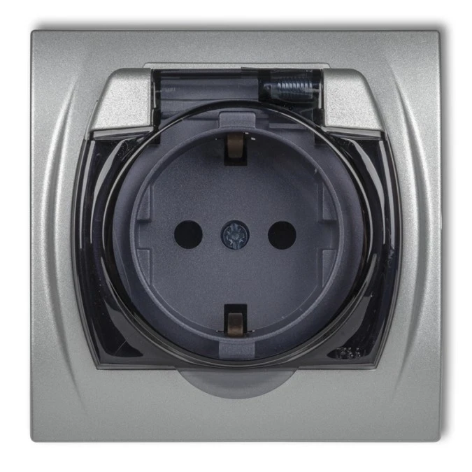 TREND Gniazdo bryzgoszczelne z/u SCHUKO (klapka dymna) srebrny 5GPB-1sdp