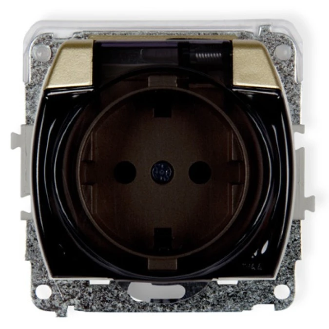 1. TREND Gniazdo bryzgoszczelne z/u SCHUKO (klapka dymna) złoty 6GPB-1sdp 28.28