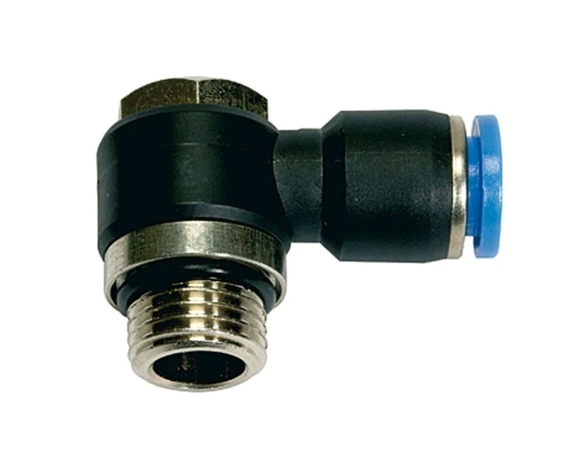 10. Złączka pneumatyczna wtykowa kątowa banjo G 1/4 GZ do węża fi 10 mm, tworzywo sztuczne 27.40