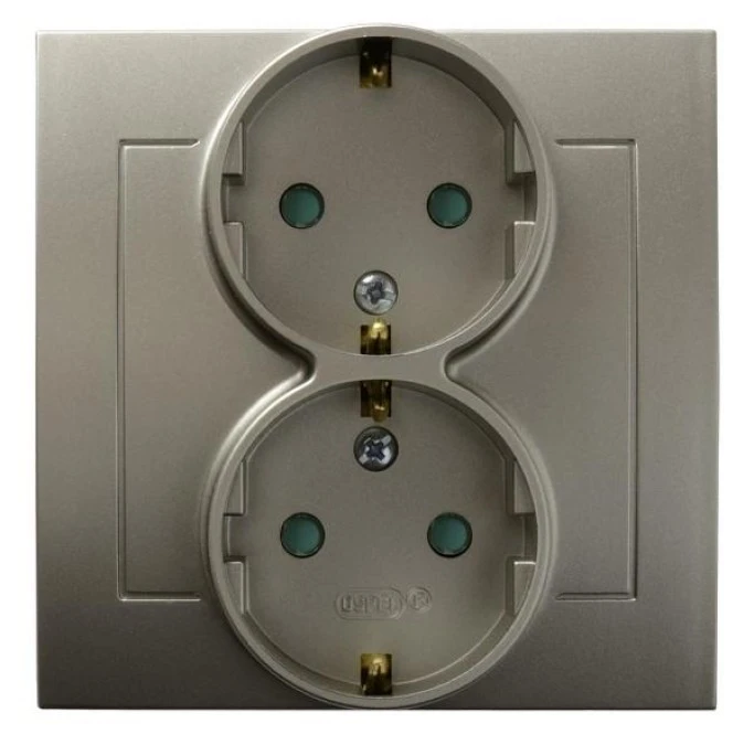 KIER Gniazdo podwójne z/u Schuko z przesłonami satyna light GP-2WSP/45
