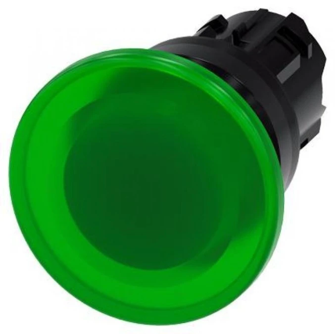 1. Przycisk grzybkowy podświetlany, 22 mm, okrągły, tworzywo sztuczne, zielony, 40 mm, impulsowy 3SU1001-1BD40-0AA0 34.01