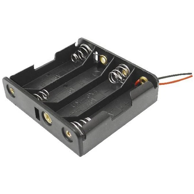 Koszyk baterii; BC304; 4xR6 (AA); z przewodem 150mm; pojemnik; czarny; R6 AA; RoHS