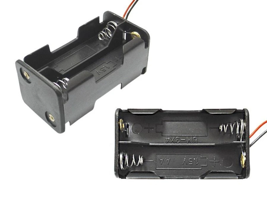 Koszyk baterii AAA x2 płaski z pokrywą, włącznikiem i przewodami