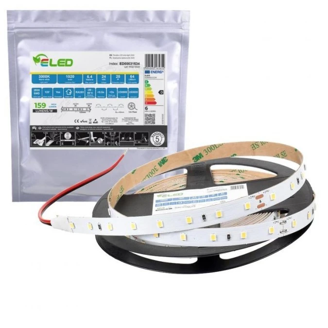 Taśma LED 2835 320 SMD 24V 6.4W 159lm/W ciepła 3000K IP20 - ED00031534 /odcinki po 5 m/
