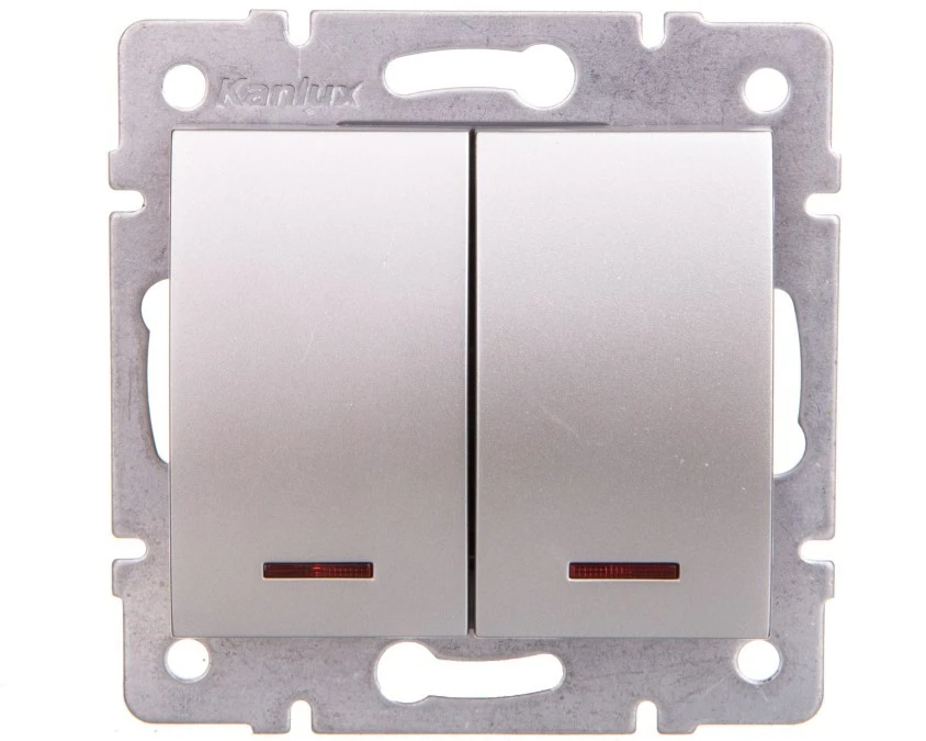 LOGI Łącznik dwugrupowy świecznikowy z LED śrubowy 10AX 250V srebrny 021120143 25198