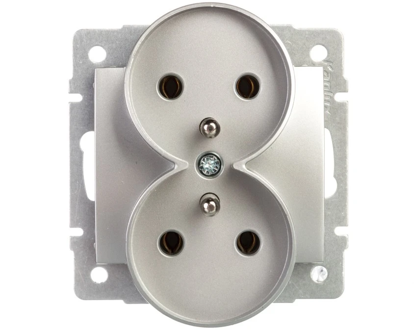 LOGI Gniazdo podwójne 2x2P+Z śrubowe 16A 250V Srebrny 25210