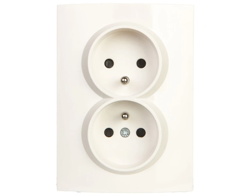 LOGI Gniazdo podwójne 2x2P+Z kompletne z przesłoną styków śrubowe 16A 250V Biały 25093