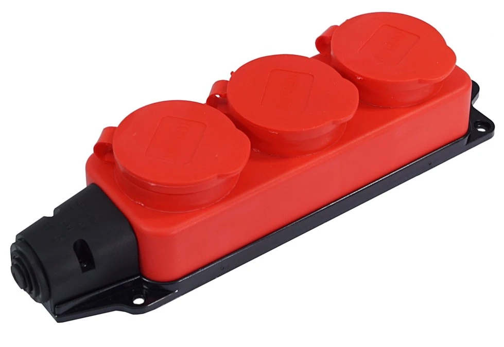 14. Listwa /rozgałęźnik/ do przedłużacza 3‑gniazda z/u gumowe IP44 czerwona AEI602233-L-R 32.16