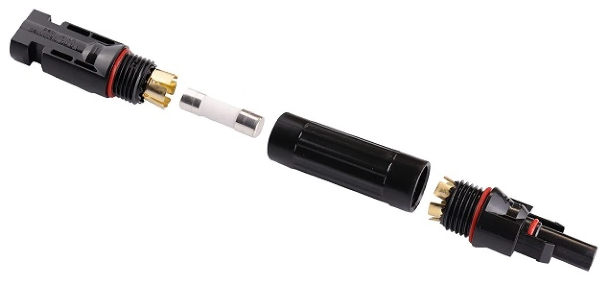 3. Złącze fotowoltaiczne MC4 z gniazdem bezpiecznikowym 10x38 MC4 1000V 10-32A MC4-B10X38 26.80