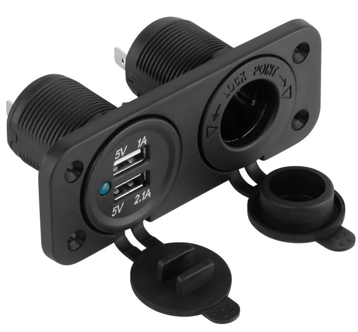 Gniazdo do zapalniczki samochodowej 12V/24V + ładowarka samochodowa 2x USB 5V / 2,1A + 1A do montażu