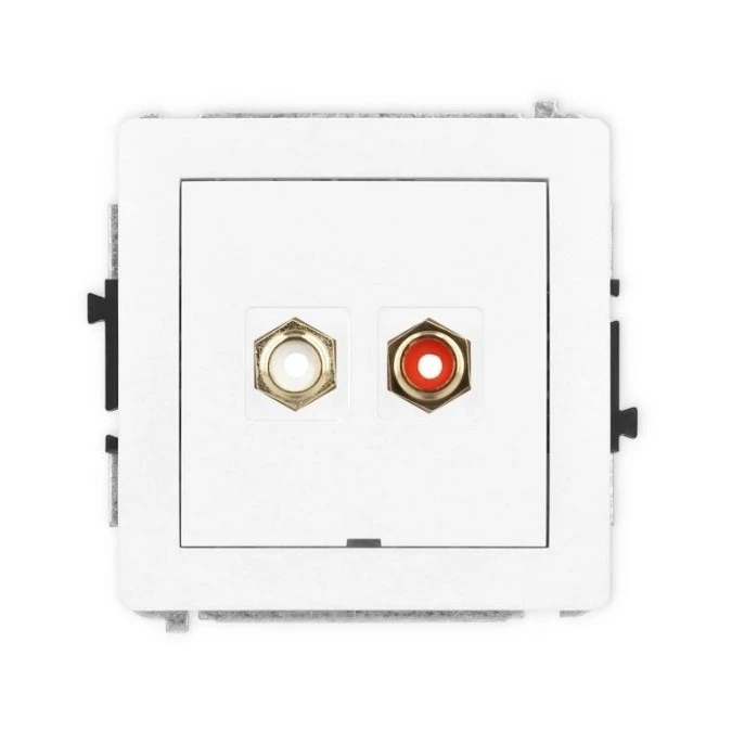 DECO Mechanizm gniazda podwójnego RCA, bez pola opisowego (typu cinch - biały i czerwony, pozłacany), biały mat 25DGRCABO-2