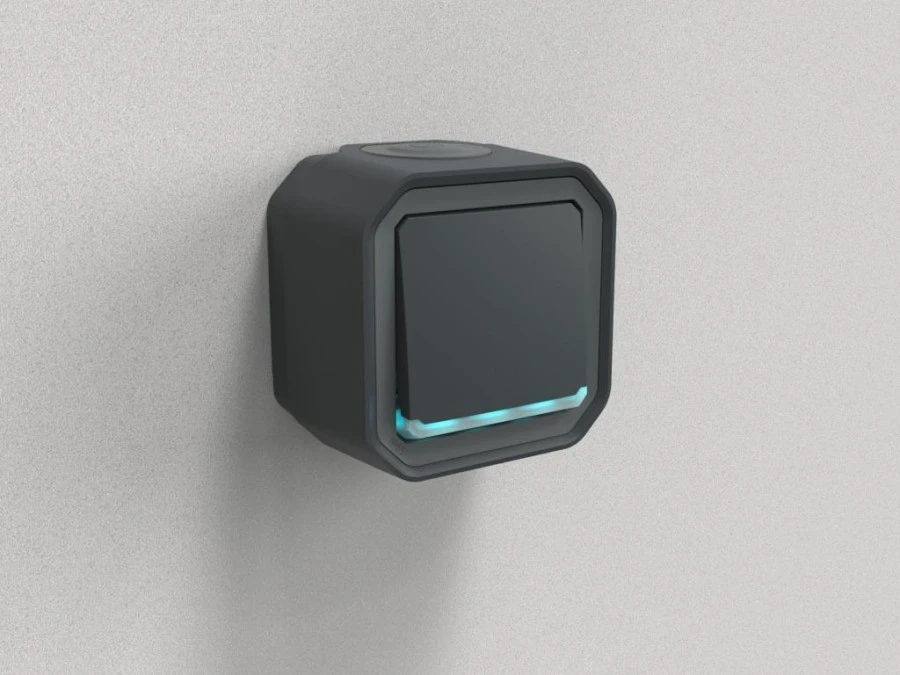 ... damp environments. This Plexo Grey switch features ...