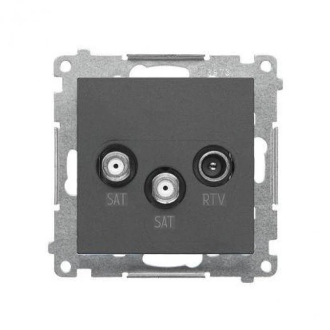 Simon 55 Gniazdo antenowe satelitarne podwójne SAT-SAT-RTV (moduł). 2x Wejście: 5 MHz÷2,4 GHz Grafitowy mat TASK2.01/116