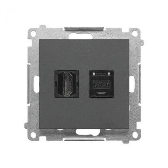 Simon 55 Gniazdo HDMI + RJ45 kat.6. (moduł) Grafitowy mat TGHRJ45.01/116