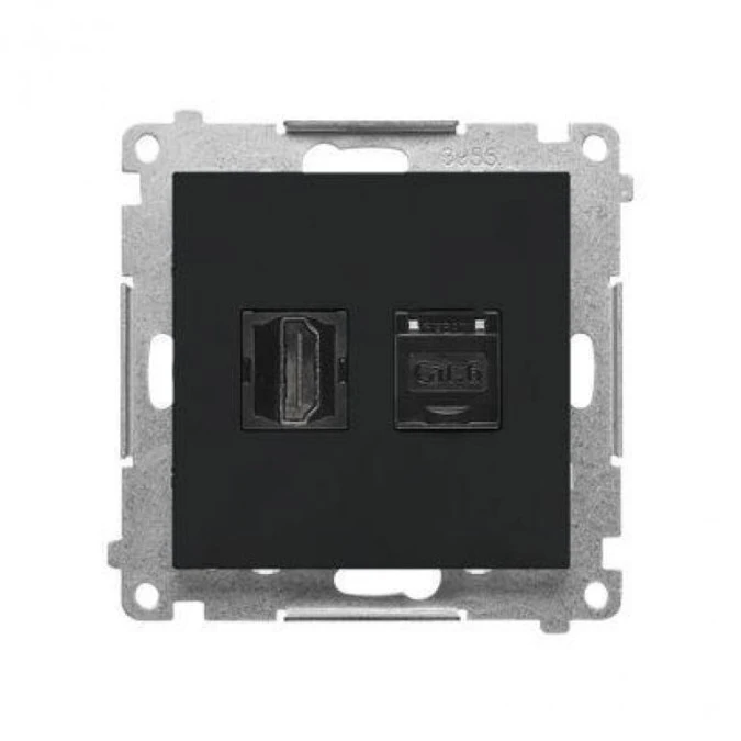 Simon 55 Gniazdo HDMI + RJ45 kat.6. (moduł) Czarny mat TGHRJ45.01/149