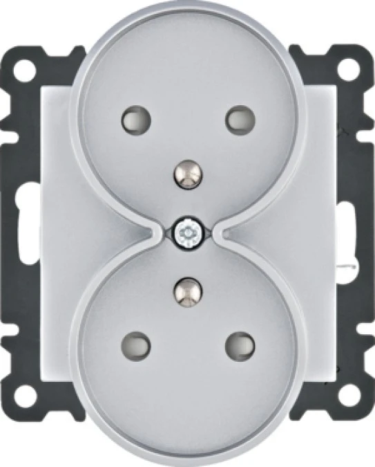 Gniazdo OSPEL dwukrotne bez uziemienia srebrne - SONATA