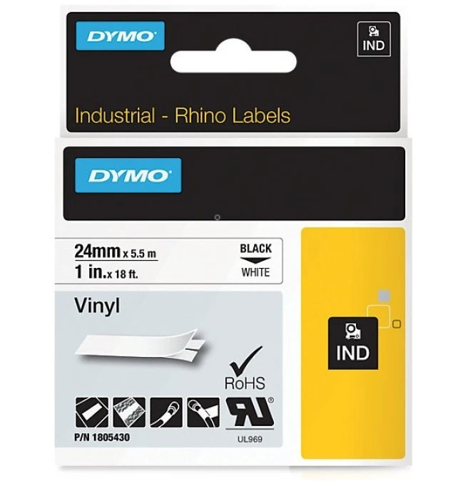 Taśma winylowa do drukarek 24mm x 5,5m czarna na białym 1805430