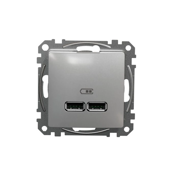 Gniazdo ładowania USB typ A+A 2,4A, srebrne aluminium, Sedna Design i Elements SDD113401