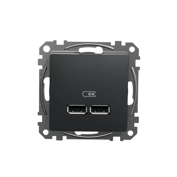 Gniazdo ładowania USB typ A+A 2,4A, czarny antracyt, Sedna Design i Elements SDD114401