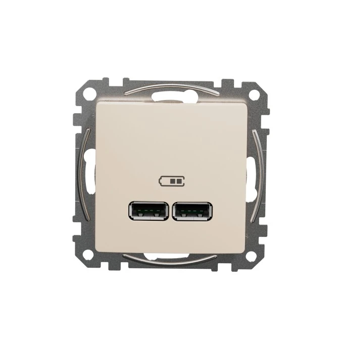 Gniazdo ładowania USB typ A+A 2,4A, beżowe, Sedna Design i Elements SDD112401