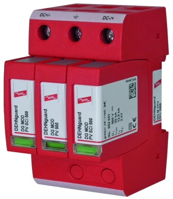 Ogranicznik przepięć C Typ 2 do ochrony instalacji PV 150 DC 3P 10kA 0,8kV DEHNguard M YPV SCI 150 952513