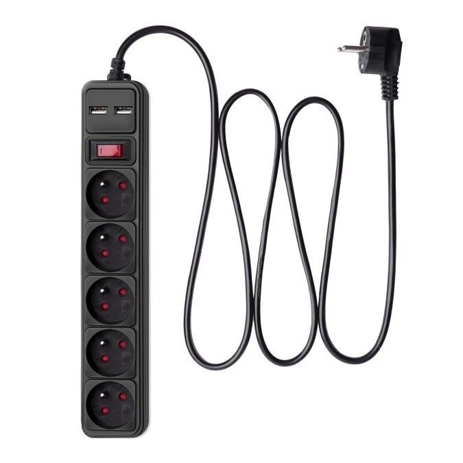 1. Listwa przeciwprzepięciowa Akyga AK-SP-05U 5 gniazd CEE 7/5 (Typ E) 2x USB-A 1.8 m 56.83