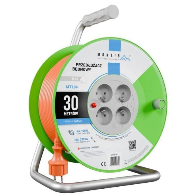 Przedłużacz bębnowy MT104-30 4x2p+Z 16A 3680W 3x1,5 30m Montis pomarańczowy