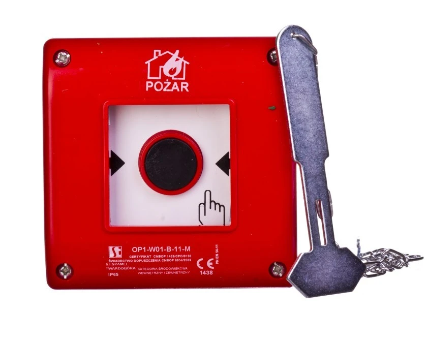 Przycisk ppoż. natynkowy 1Z 1R czerwony z młotkiem OP1-W01-B11-M