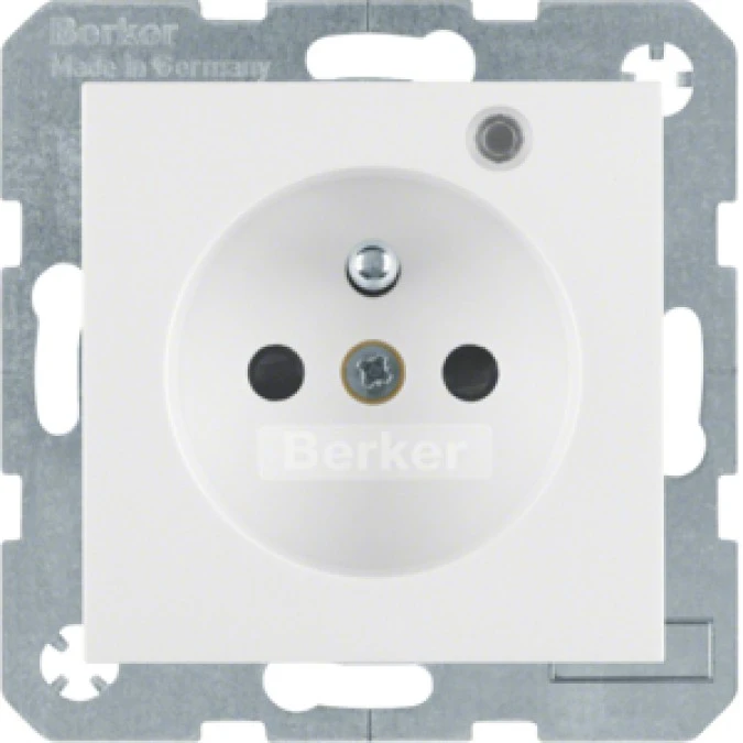 S.1/B.3/B.7 Glas Gniazdo pojedyncze z/u i LED kontrolną z ochroną styków śnieżnobiały połysk 6765098989