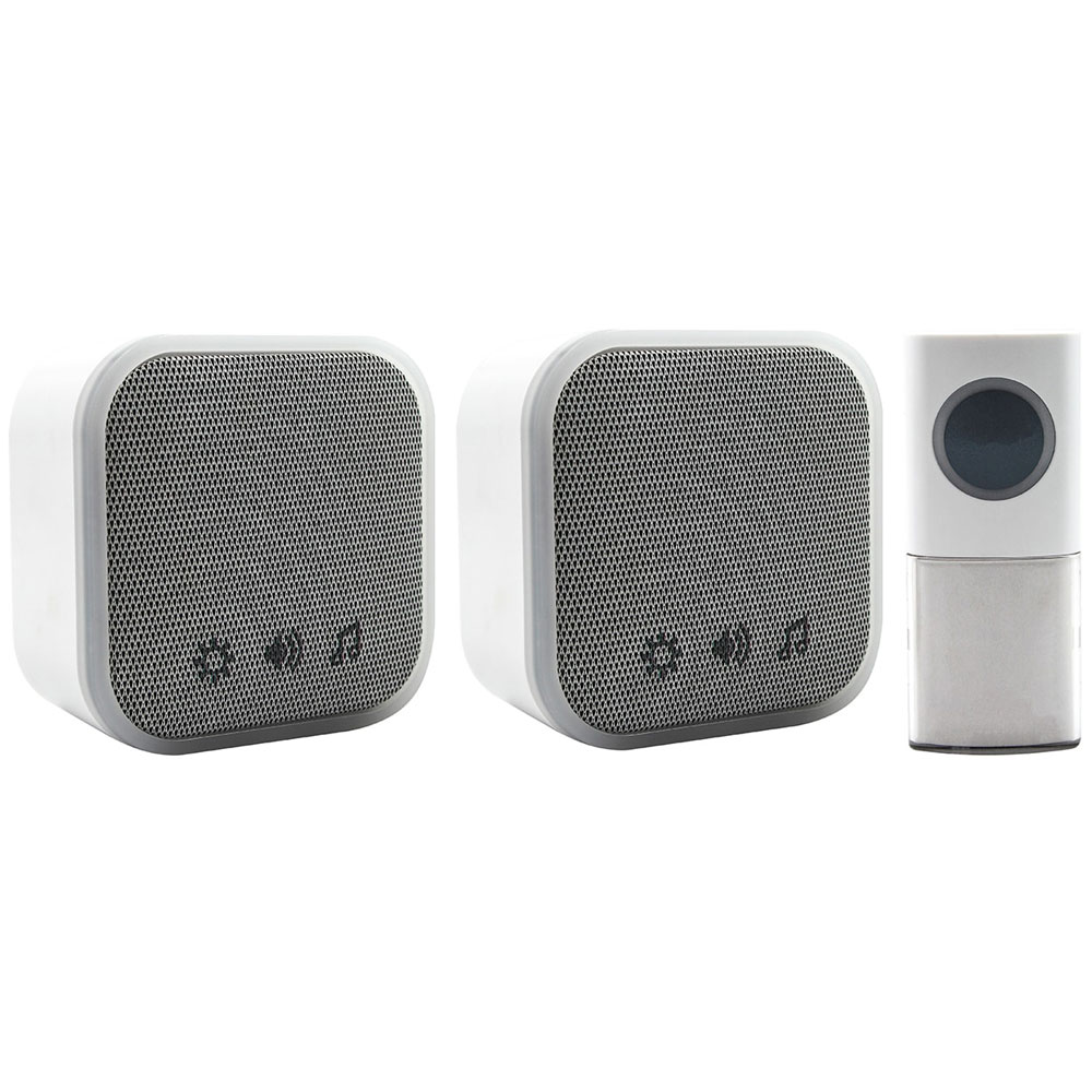 Uni-Com 98476 + 98477GB + W96001 Portable and Plug-In Door Chime Set, White