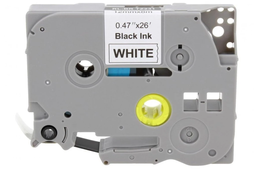 Taśma Tze-231 do drukarki Brother 12mm 8m biała taśma czarny nadruk