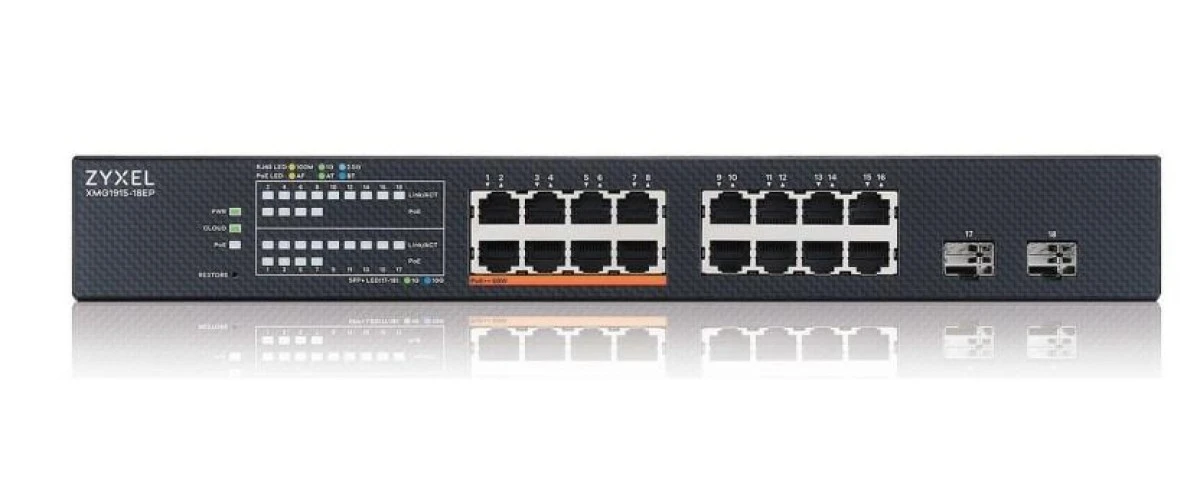8. Switch Zyxel XMG1915-18EP 18p PoE (PoE++: 8) 180W Managed Multigigabit/10G 2477.68