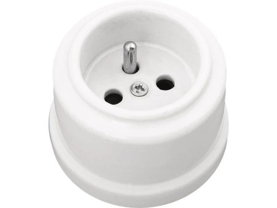Gniazdo pojedyncze natynkowe 2P+Z Retro ceramic 16A-250V~, białe