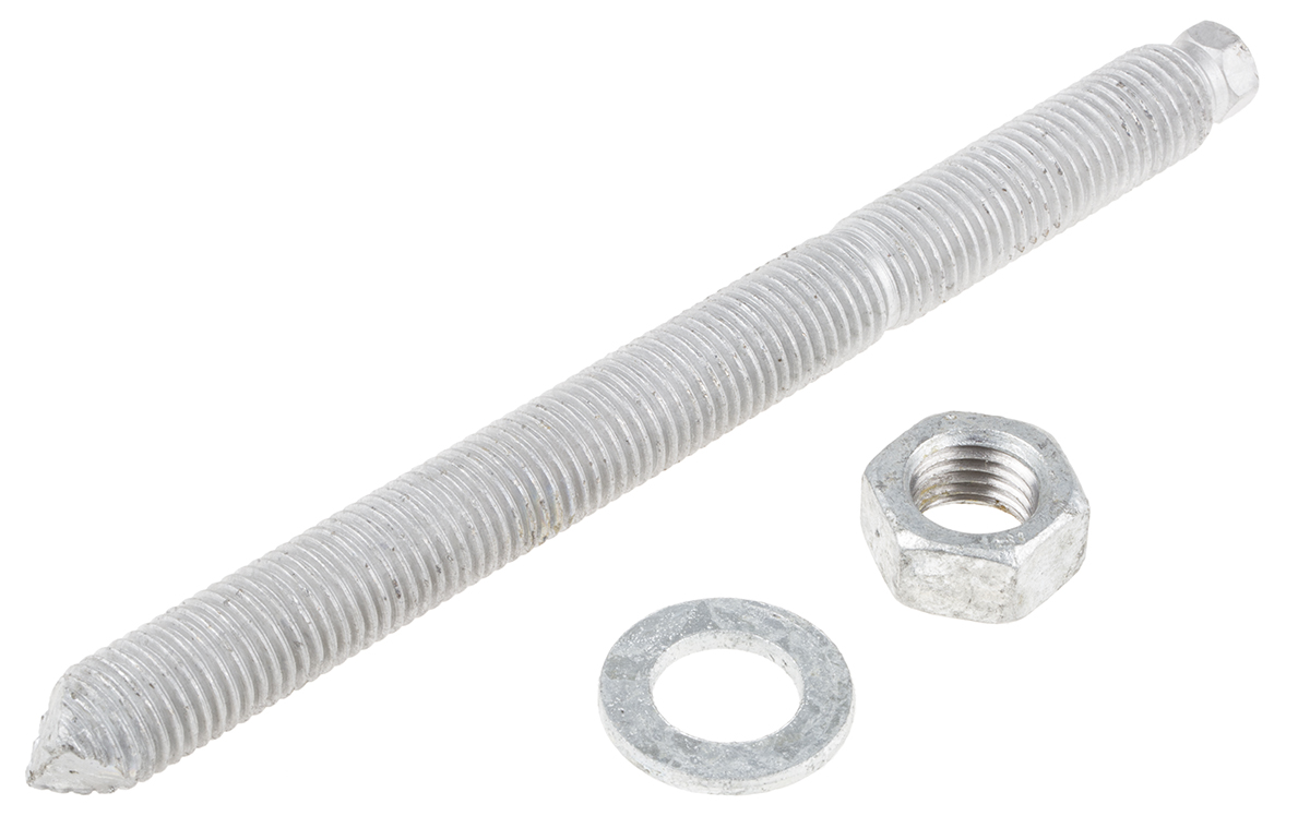 Śruba kotwiąca dł 190mm M16 Stal wysokowęglowa Ø 18mm RS PRO Kołek kotwiący galwanizowany chemicznie