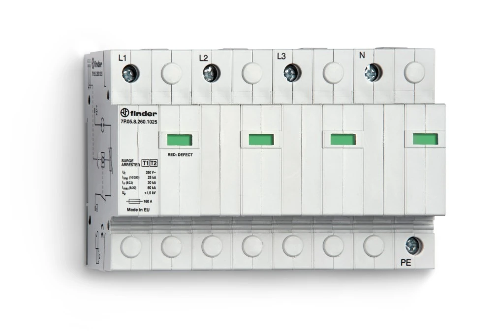 Ogranicznik przepięć Typ T1+T2 25/30kA 1,5kV 230V AC, kombinacja 4xwarystor+iskiernik (L,N-PE) 7P.05.8.260.1025