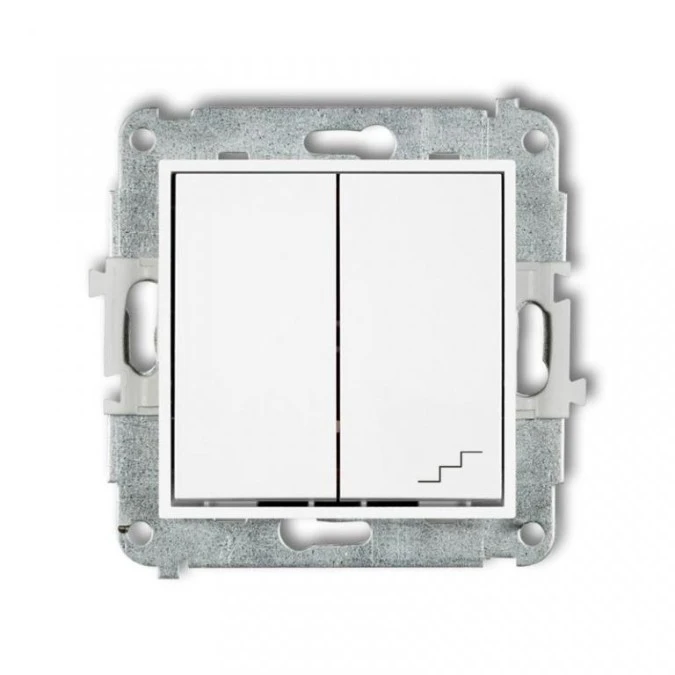 2. MINI Mechanizm łącznika jednobiegunowego ze schodowym (dwa klawisze bez piktogramów, wspólne zasilanie) biały mat 25MWP-10.11 38.11