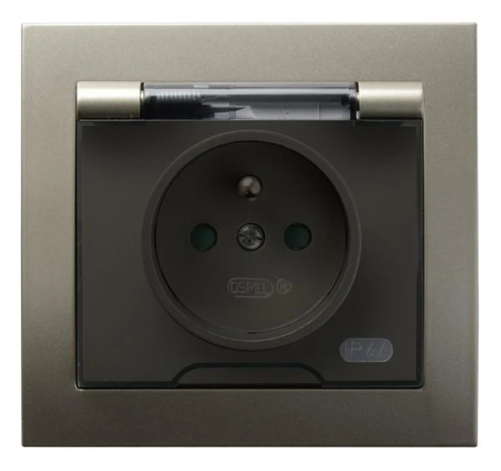 7. KIER Gniazdo hermetyczne z uziemieniem schuko IP-44 wieczko przezroczyste brązowy metalik GPH-1WS/52/d OSPEL 28.38