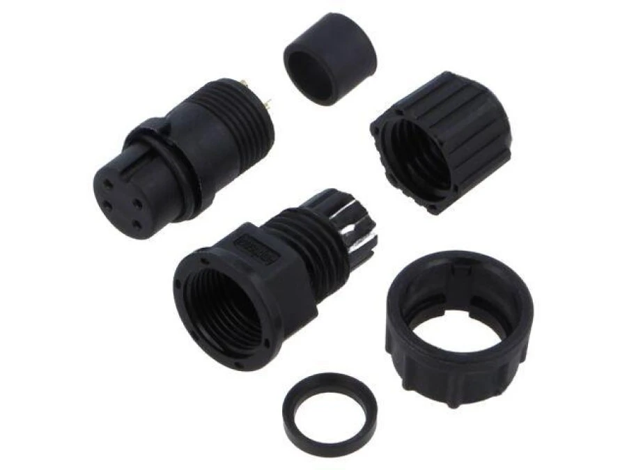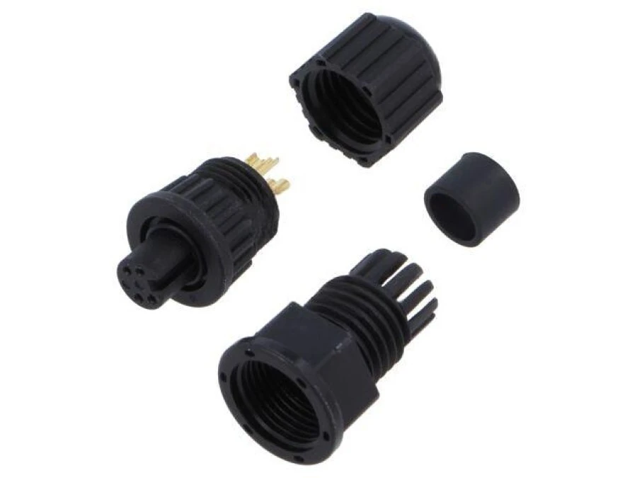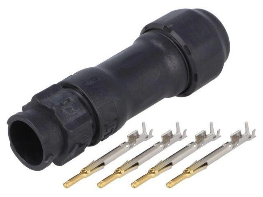 9. Złącze okrągłe, żeńskie, PIN: 4, gniazdo/wtyk, proste, na przewód, 500 V, 2 A AU-04BFFA-LL7001 56.09