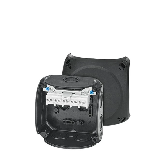 Puszka odgałęźna do instalacji wewnętrznych czarna IP66 z dławnicami membranowymi 5x4 mm2 Cu DK 0404 B 62000298