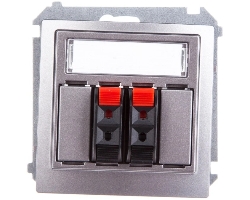 Simon Basic Gniazdo głośnikowe podwójne z polem opisowym stal inox BMGL3.01/21