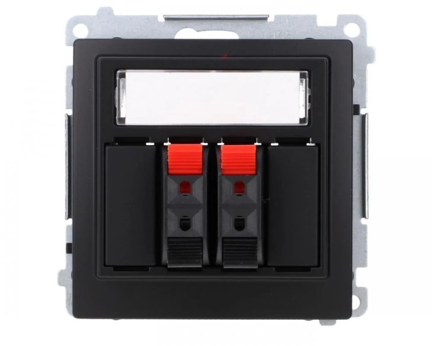 Simon Basic Gniazdo głośnikowe 2-krotne z polem opisowym (moduł) Przekrój przew.dla wejścia i wyjścia 2,5 mm2 czarny BMGL3.01/49