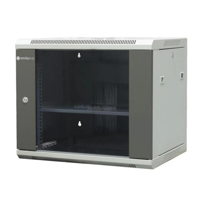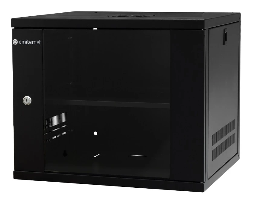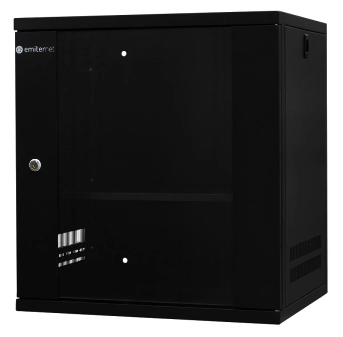 9. Szafa wisząca lekka niedzielona 19 12U, drzwi blacha/szkło, ściągane osłony boczne, 550×450×590 szer./gł./wys. mm RAL: 9004, w 317.30