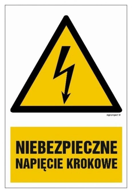 ZNAK - HA014 Niebezpieczne napięcie krokowe 30 x 45 cm FN - Folia samoprzylepna