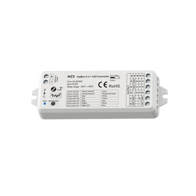 Sterownik LED 5w1 Skydance (ZigBee) - Mono /CCT /RGB /RGB+CCT - 12-24V DC 15A - Tuya - WZ5