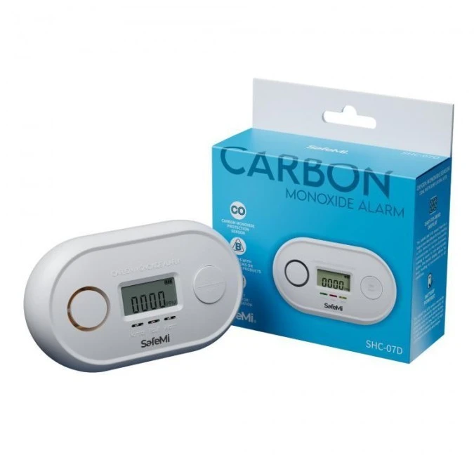 Czujnik tlenku węgla (czadu) bateryjny z wyświetlaczem 10 lat żywotności 7 lat gwarancji znak B SafeMi SHC-07D